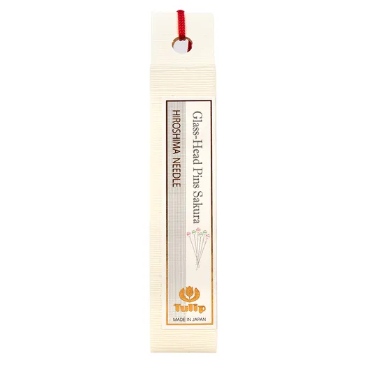 SAKURA knappenåle med glashoved i smukke pink/grønne farver. Tåler strygejern.